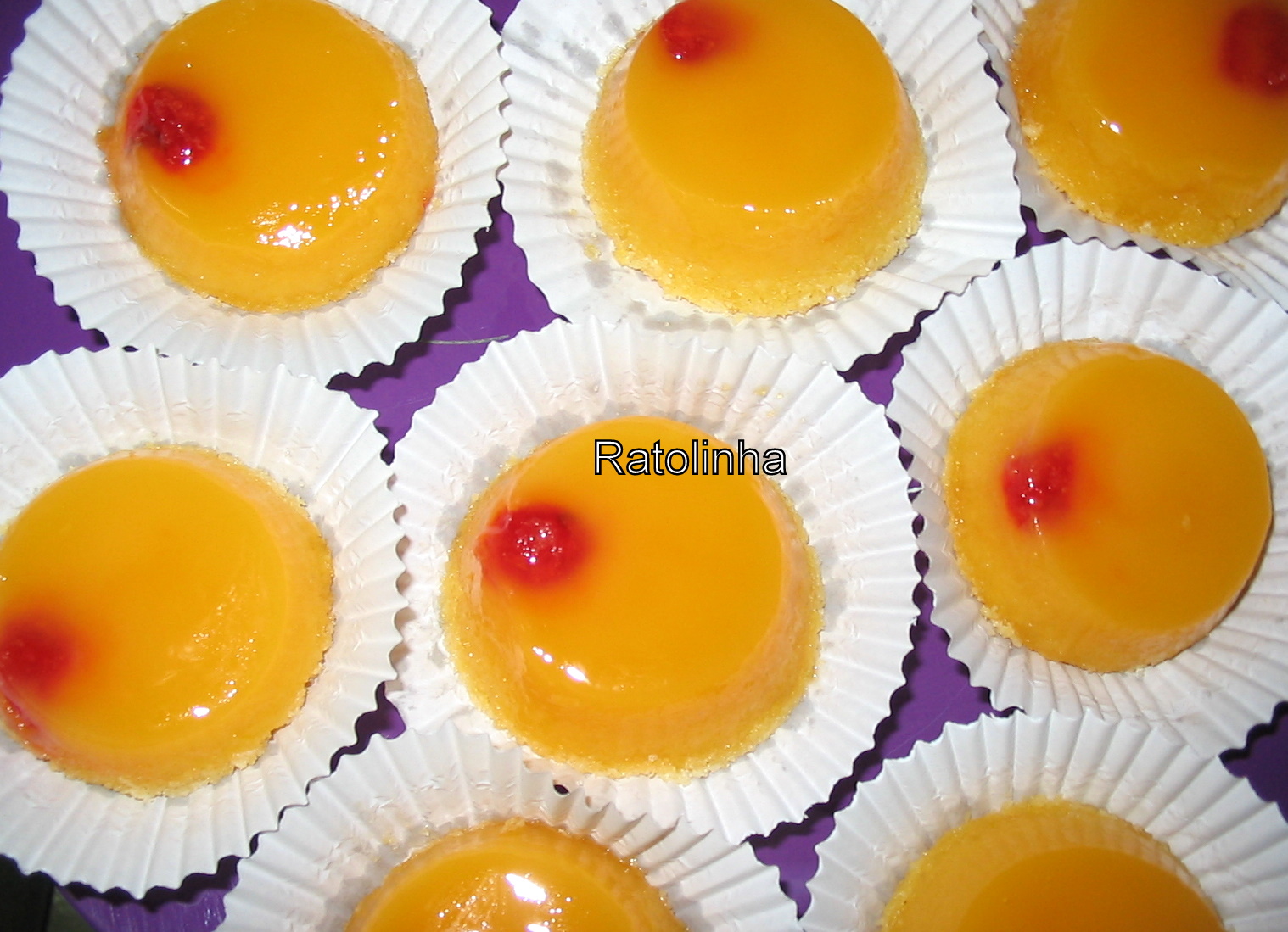 Verter o preparado nas forminhas e colocá-las no tabuleiro com a água fervida. Levar ao forno a cozer em banho-maria, até ficarem douradinhos por cima. Demorou cerca de 45 minutos a cozer.
