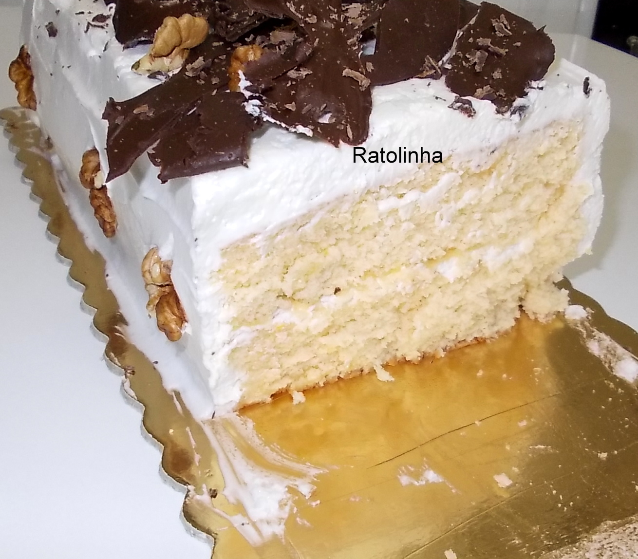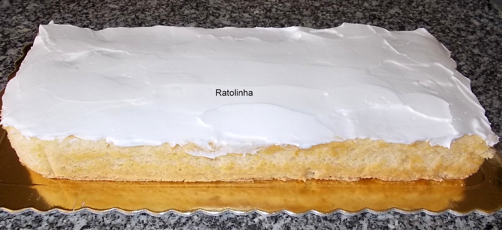 Este bolo não leva nenhum tipo de gordura, nem margarina, nem óleo. Por isso, fica um bolo mais seco que acaba por ser ideal para ser barrado e recheado.